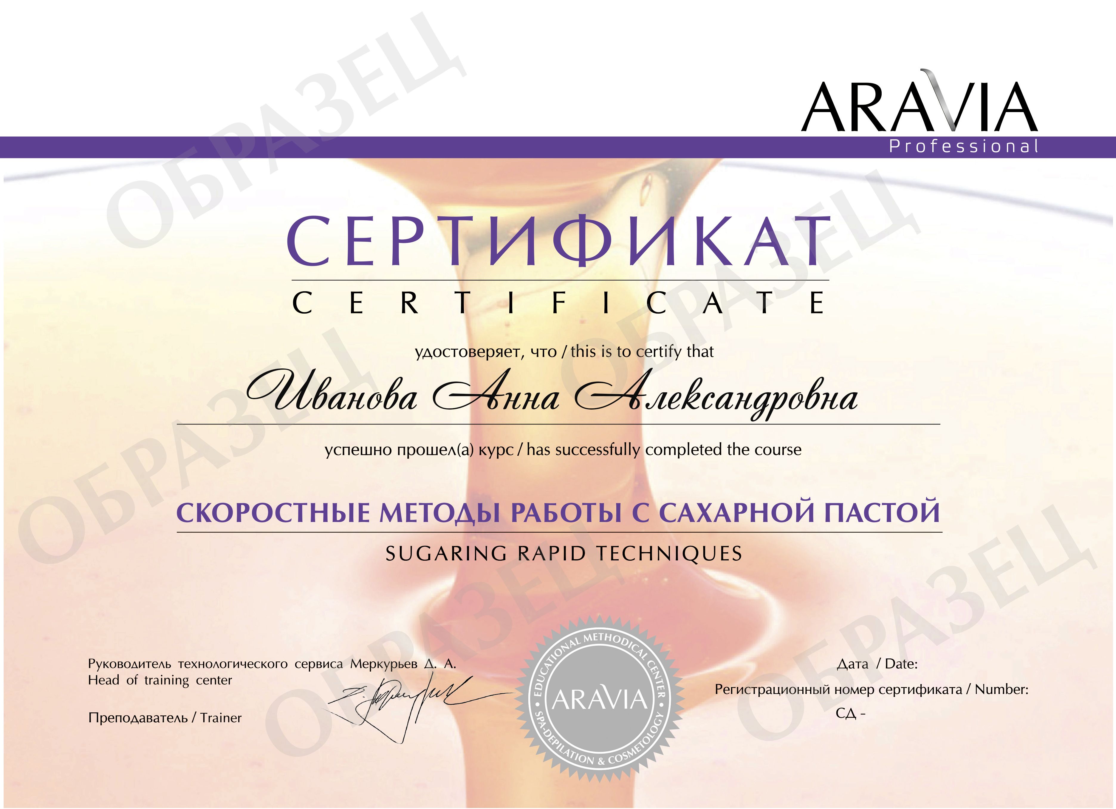 Проходила повышения по шугарингу в Учебном Центре Аравиа у технолога Алисы Вечеря. Очень крутой центр и коллектив в нем просто супер! Рада, что мой выбор пал именно на этот учебный центр! Огромное спасибо за знания, позитив и мой золотой сертификат Эксперта SPA-Шугаринга!!!